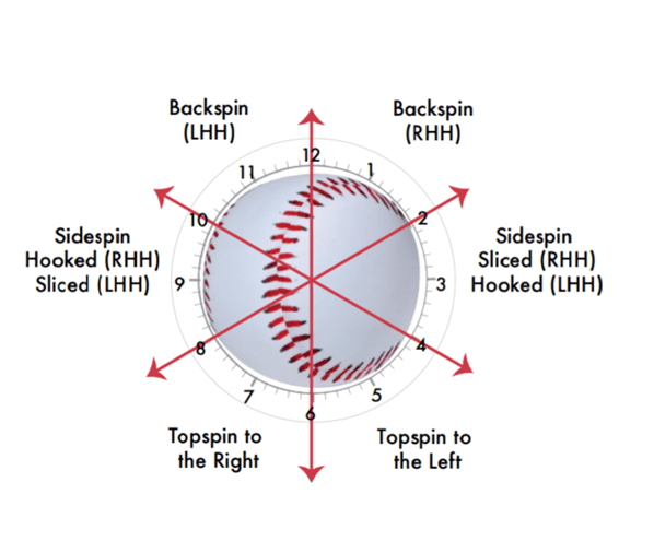 An Edgertronic high speed camera was used to capture batted ball collision and spin imparted to the baseball after contact from the various baseball bat attack angles. The Edgertronic Camera allowed for a high-speed observational video analysis of batted ball contact. The camera was placed behind contact and to the side of contact. A Blast Motion Baseball Bat Sensor was used to capture all bat metrics and monitor the attack angles and vertical bat angle of hitters’ swings during the experiment. A Rapsodo Hitting Unit calculated exit velocity, spin rates, spin axis, distance traveled, and launch angles of every batted ball. (Rapsodo, 2018a) Exit velocity, launch angle, distance, spin rate, attack angle, spin direction, and vertical bat angle was entered in a Microsoft Excel spreadsheet in real time as the experiment was being conducted. Time stamps between the two platforms do not match and manually entering datasets was the only viable solution. The Rapsodo Hitting Unit 3D spinning ball and spin direction was used to determine the most dominant spin direction. The batted ball was labeled as a backspin, sidespin, or topspin batted ball outcome. (Figure 3-1)