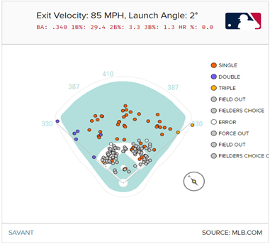 | Batted Ball Type | Batting Average | BABIP | wOBA | Exit Velocity Average (mph) | HRs |